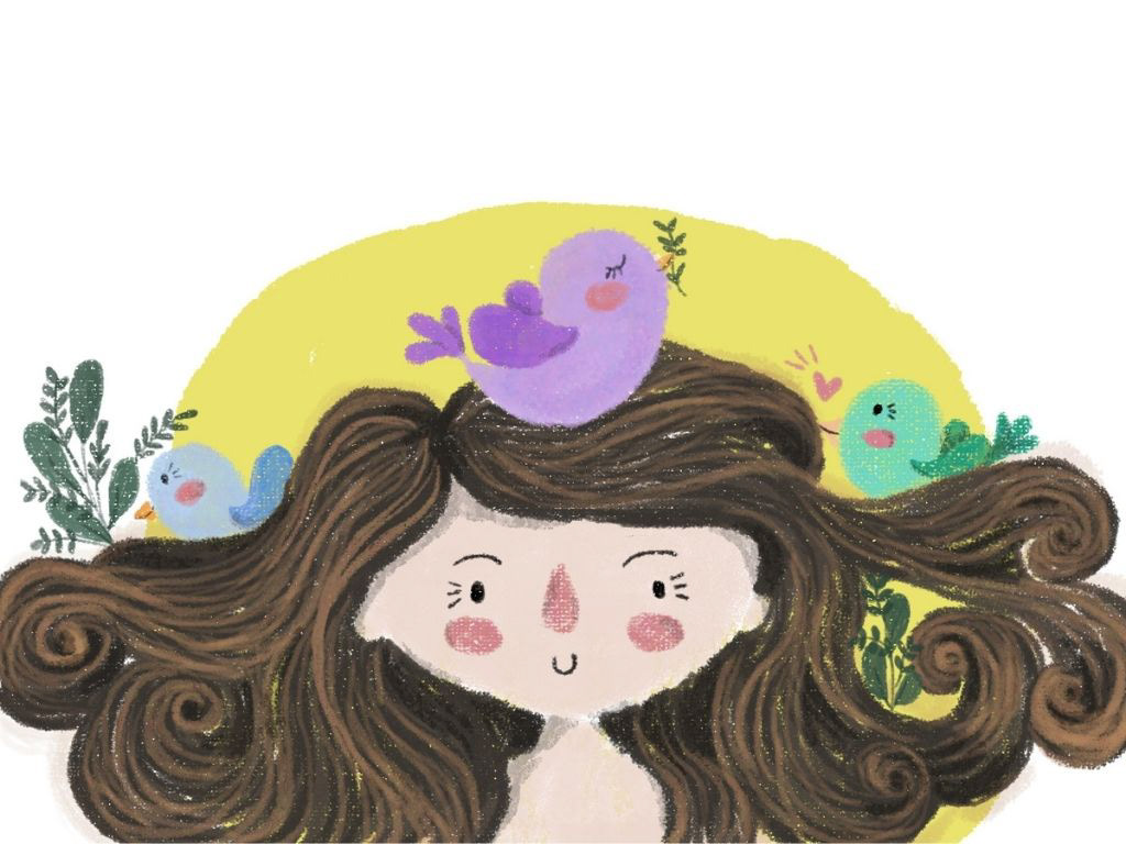 A "menina passarinha" foi uma ilustração que criei a partir de uma experiência pessoal do dia a dia materno. E, se ela tivesse sido criada para dar vida à cada de um livro infantil?