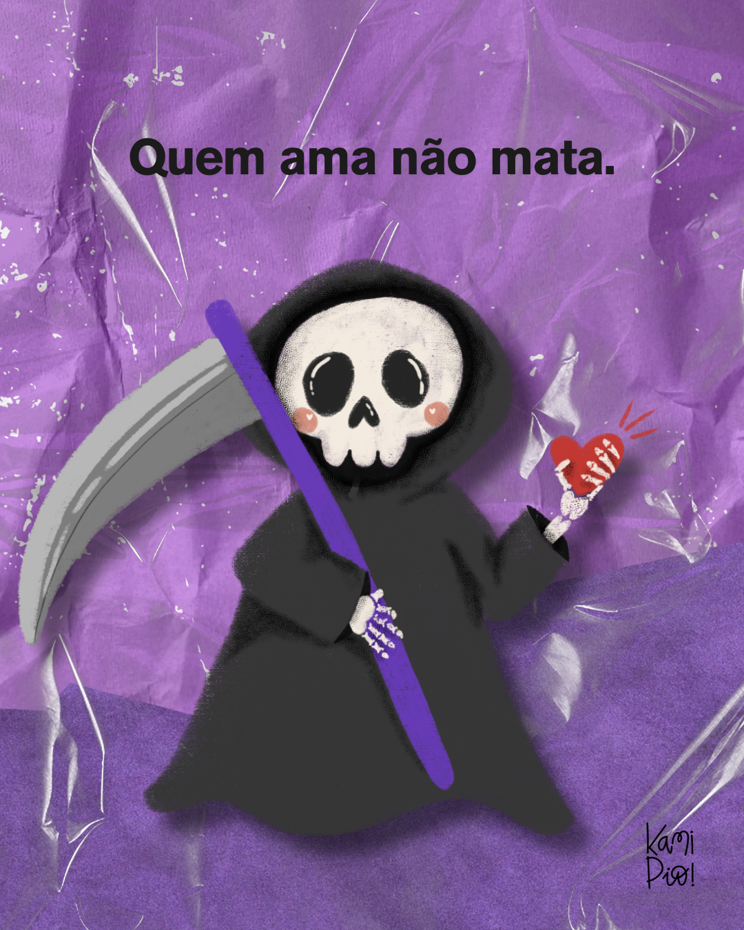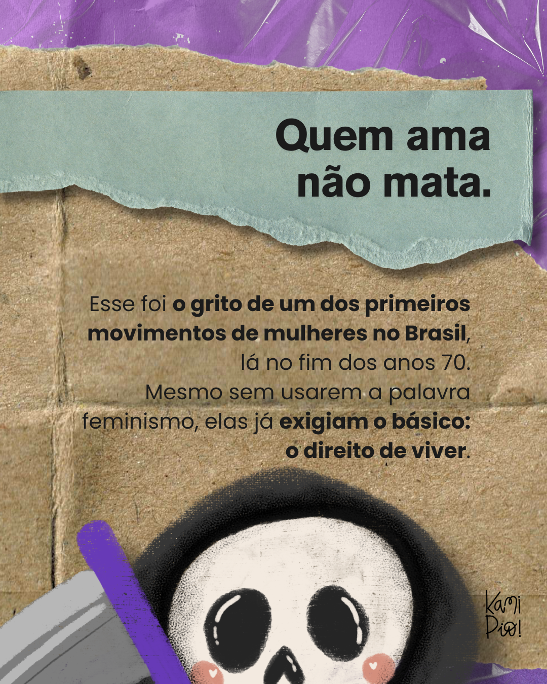 Ilustra desenvolvida para post de dia dos namorados, resgatando a frase de protesto do primeiro ato feminista de rua contra o feminicídio no Brasil.